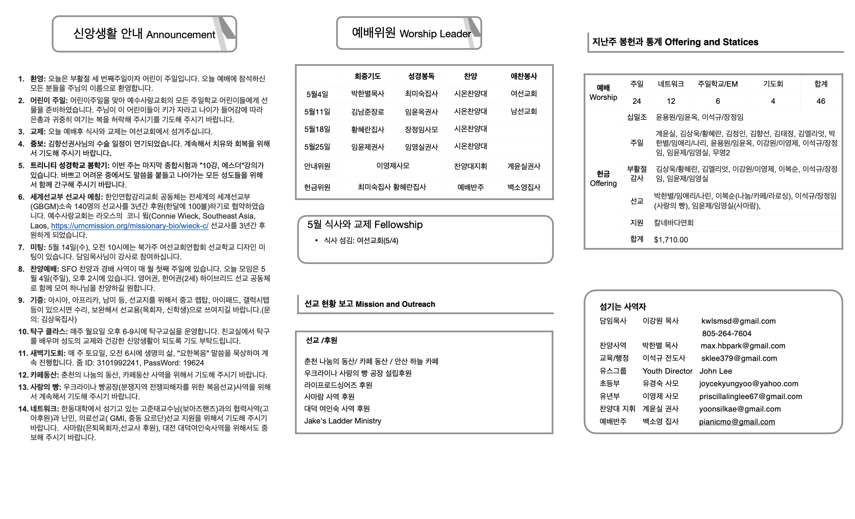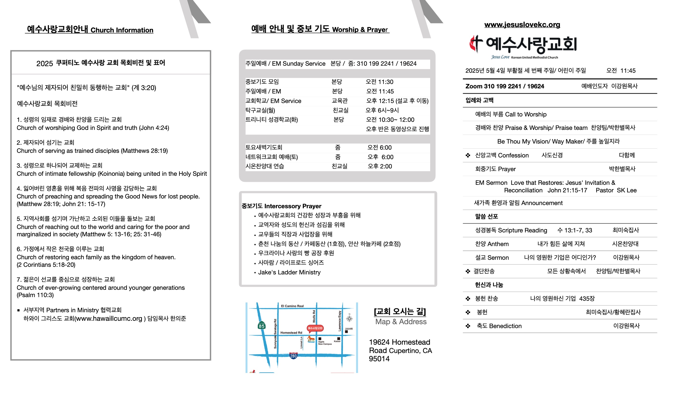 주일 예배 주보(어린이 주일)_5/4/25 페이지 정보 작성자 예수사랑교회 댓글 0건 조회 2,505회 작성일 25-05-04 23:29 목록 본문 주일 예배 주보(어린이 주일)_5/4/25 이전글주일예배_5/11/25 25.05.12 다음글주일예배_4/27/25 25.04.27 댓글 0 댓글목록 등록된 댓글이 없습니다. 목록