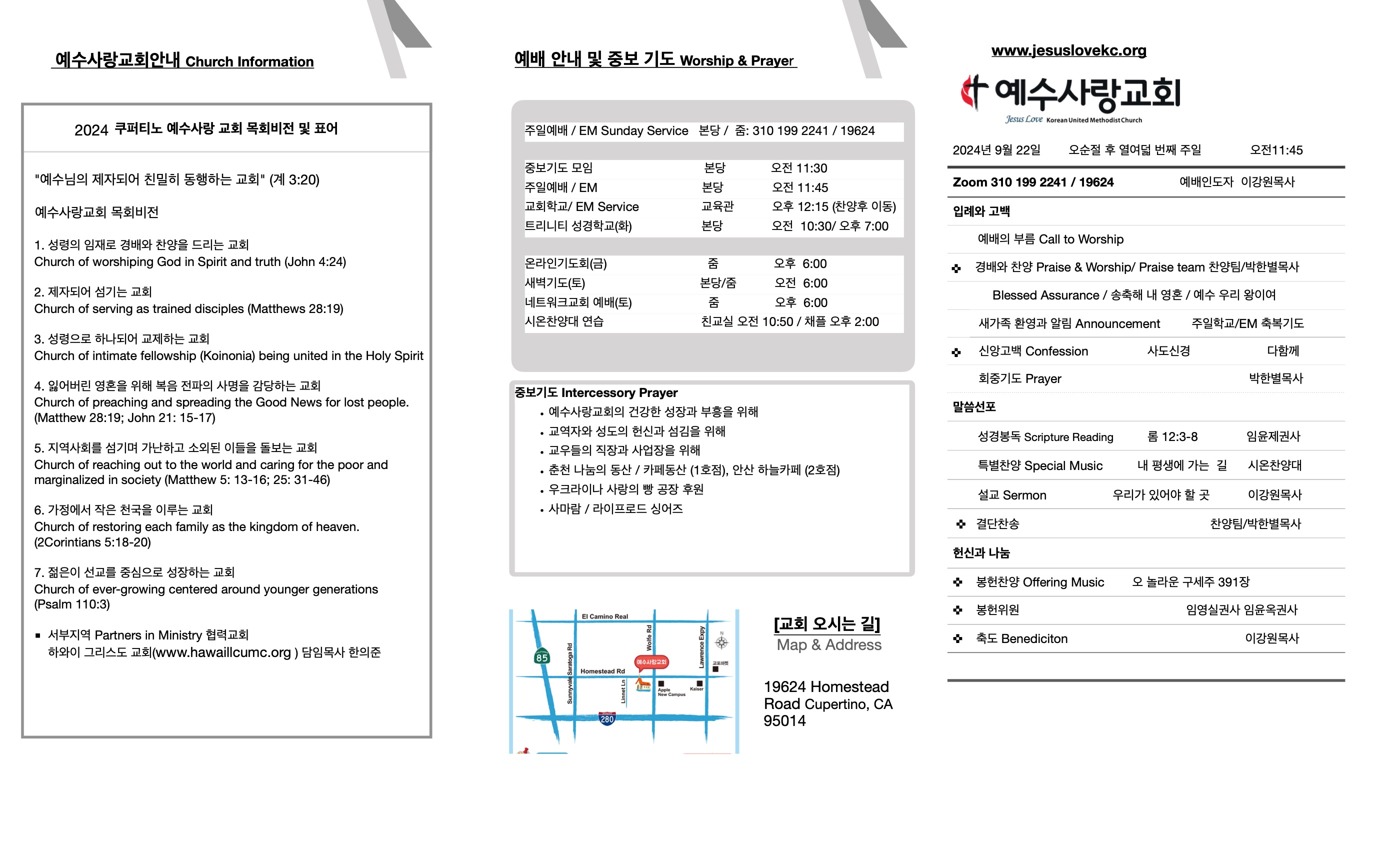 2024년 9월 22일 주일예배 주보 페이지 정보 작성자 예수사랑교회 댓글 0건 조회 4,290회 작성일 24-10-05 15:08 목록 본문 2024년 9월 22일 주일예배 주보 이전글2024년 9월 29일 주일예배 주보 24.10.05 다음글2024년 9월 15일 주일예배 24.09.18 댓글 0 댓글목록 등록된 댓글이 없습니다. 목록