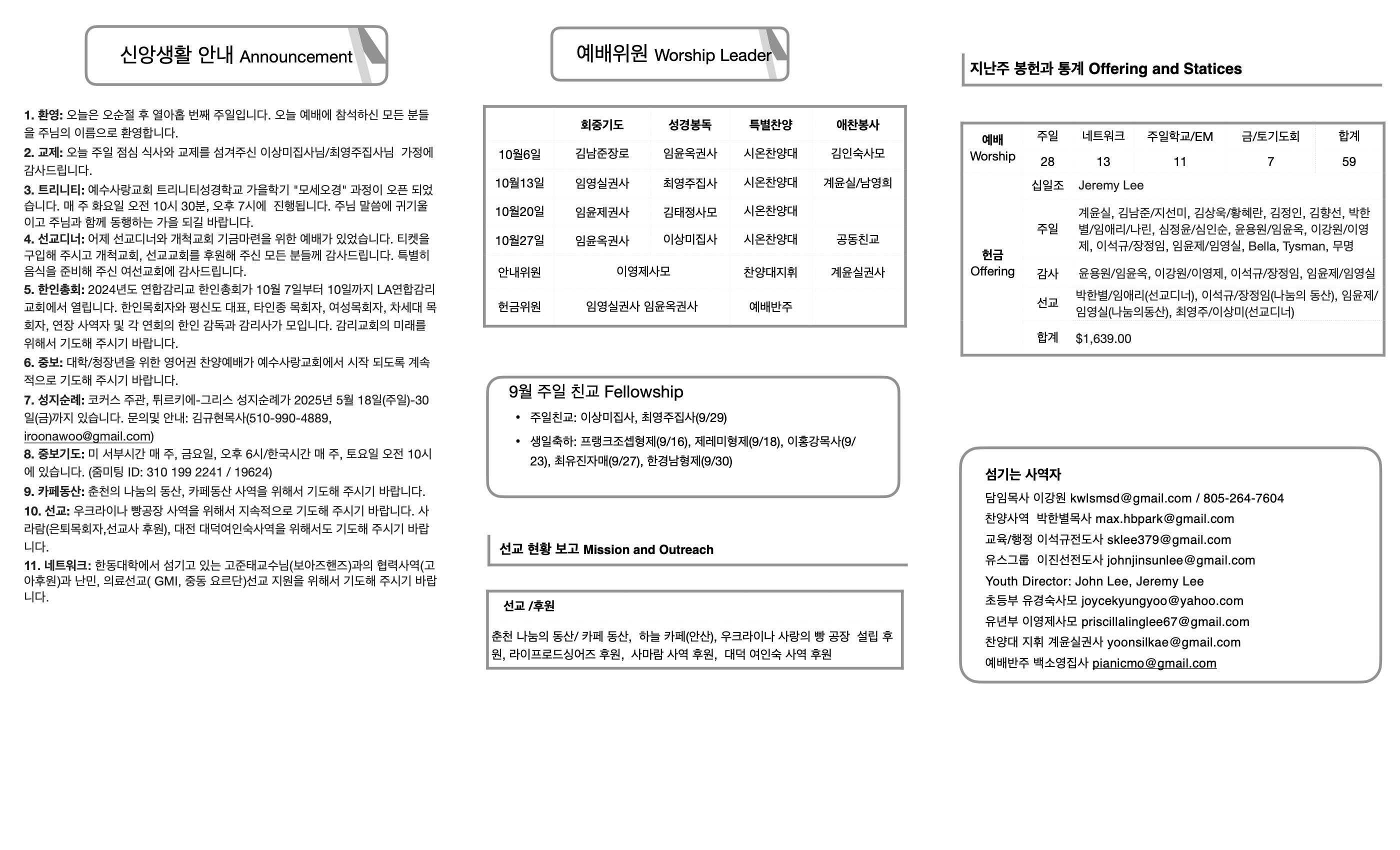 2024년 9월 29일 주일예배 주보 페이지 정보 작성자 예수사랑교회 댓글 0건 조회 4,313회 작성일 24-10-05 15:09 목록 본문 2024년 9월 29일 주일예배 주보 이전글주일 예배 주보 11/3/24 25.01.17 다음글2024년 9월 22일 주일예배 주보 24.10.05 댓글 0 댓글목록 등록된 댓글이 없습니다. 목록