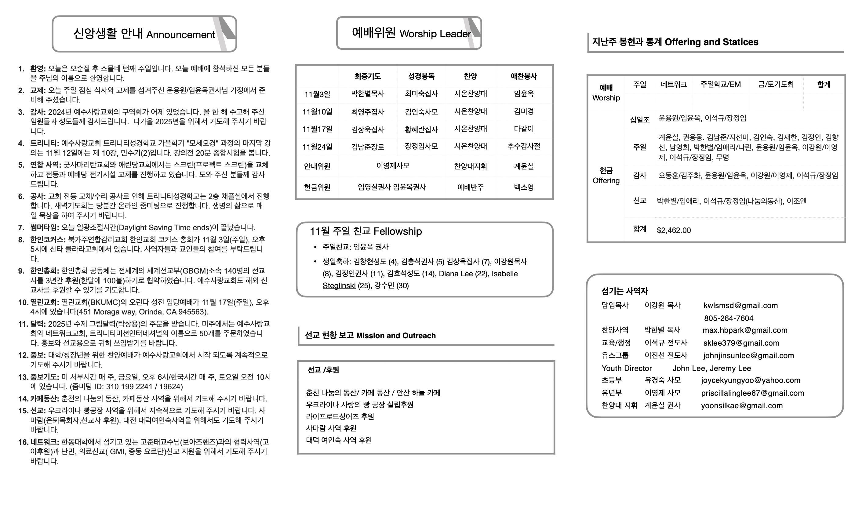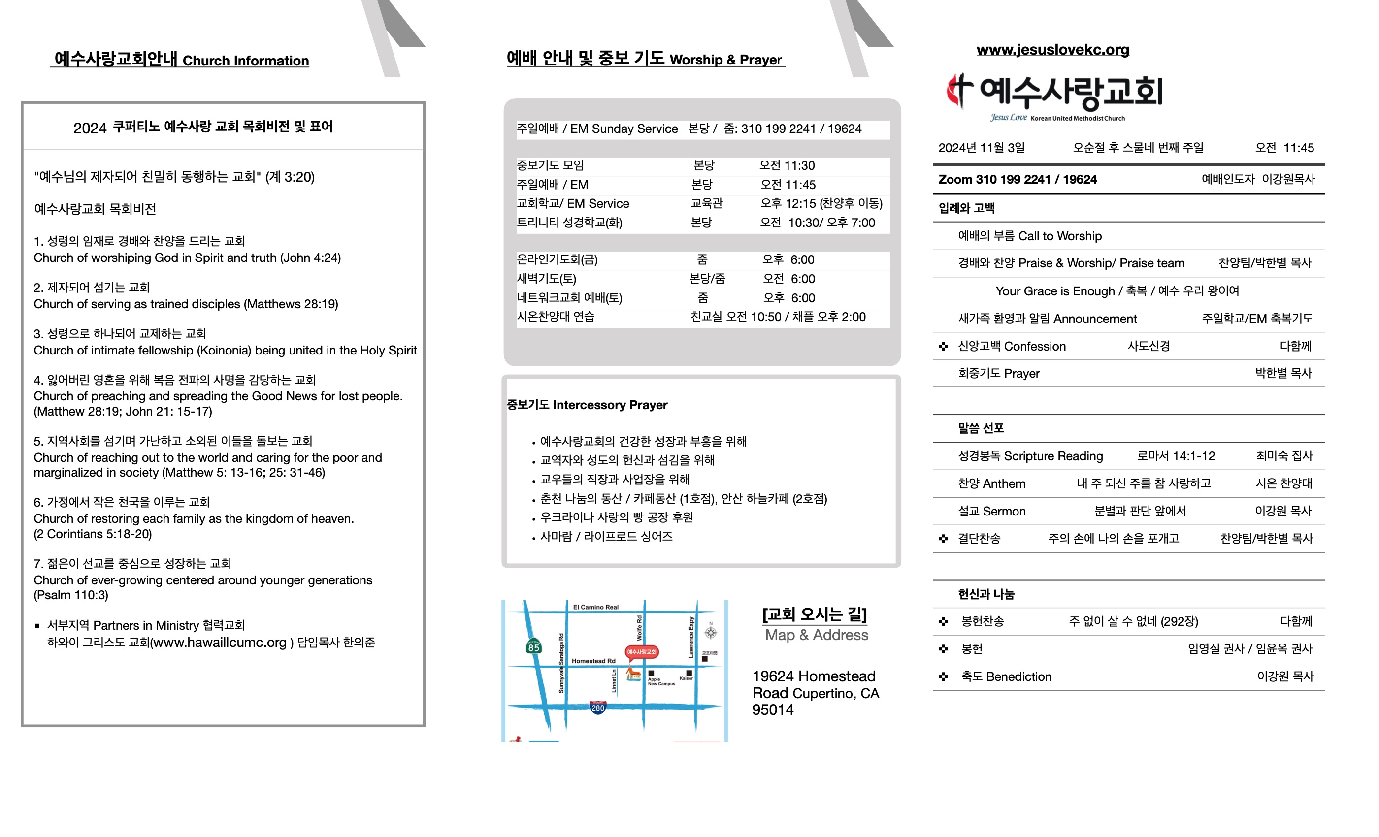 주일 예배 주보 11/3/24 페이지 정보 작성자 예수사랑교회 댓글 0건 조회 4,494회 작성일 25-01-17 21:53 목록 본문 주일 예배 주보 11/3/24 이전글주일 예배 주보 11/10/24 25.01.17 다음글2024년 9월 29일 주일예배 주보 24.10.05 댓글 0 댓글목록 등록된 댓글이 없습니다. 목록