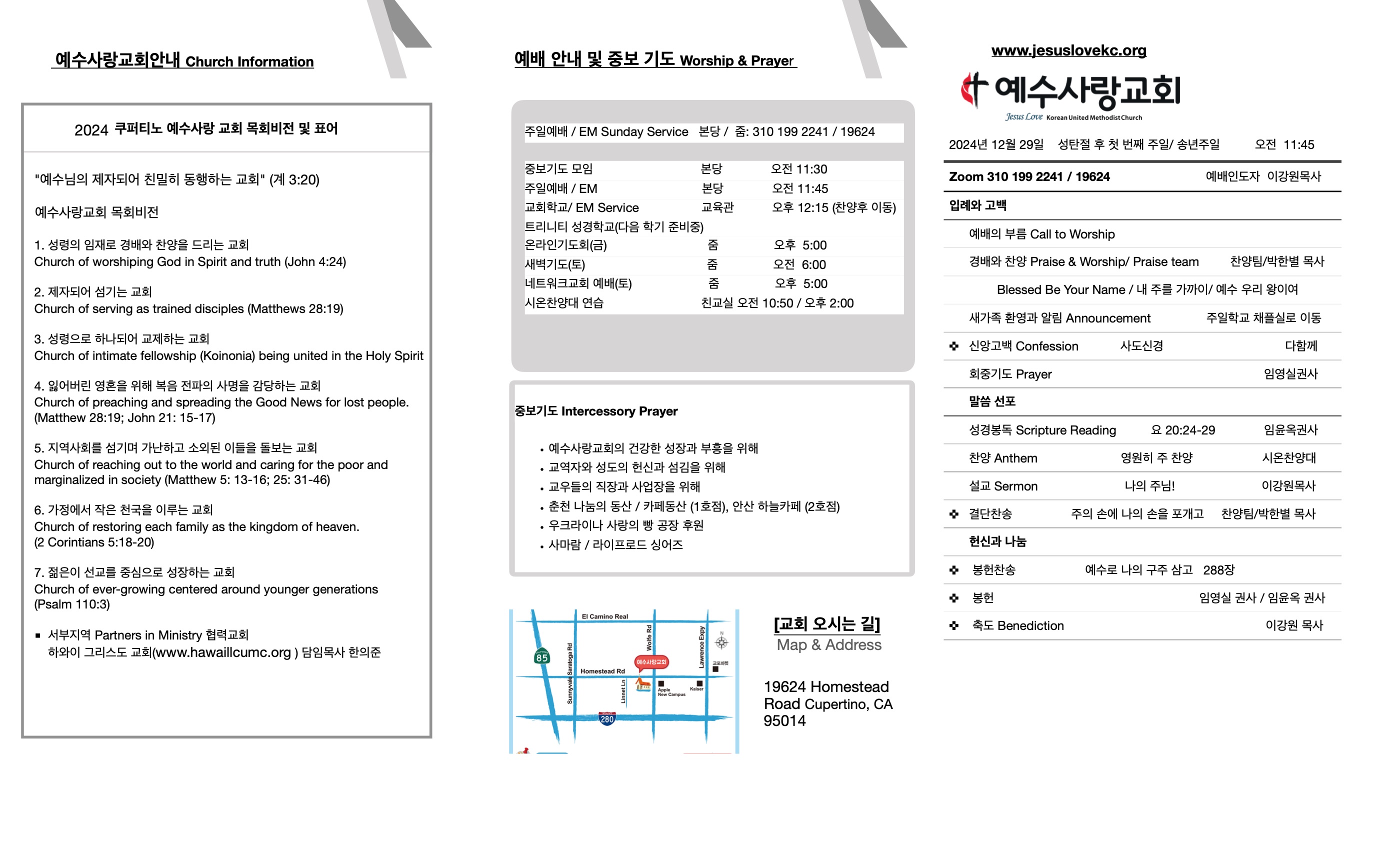 주일 예배 주보 12/29/24 페이지 정보 작성자 예수사랑교회 댓글 0건 조회 4,280회 작성일 25-01-17 22:06 목록 본문 주일 예배 주보 12/29/24 이전글주일 예배 주보 1/5/25 25.01.17 다음글주일 예배 주보 12/22/24 25.01.17 댓글 0 댓글목록 등록된 댓글이 없습니다. 목록