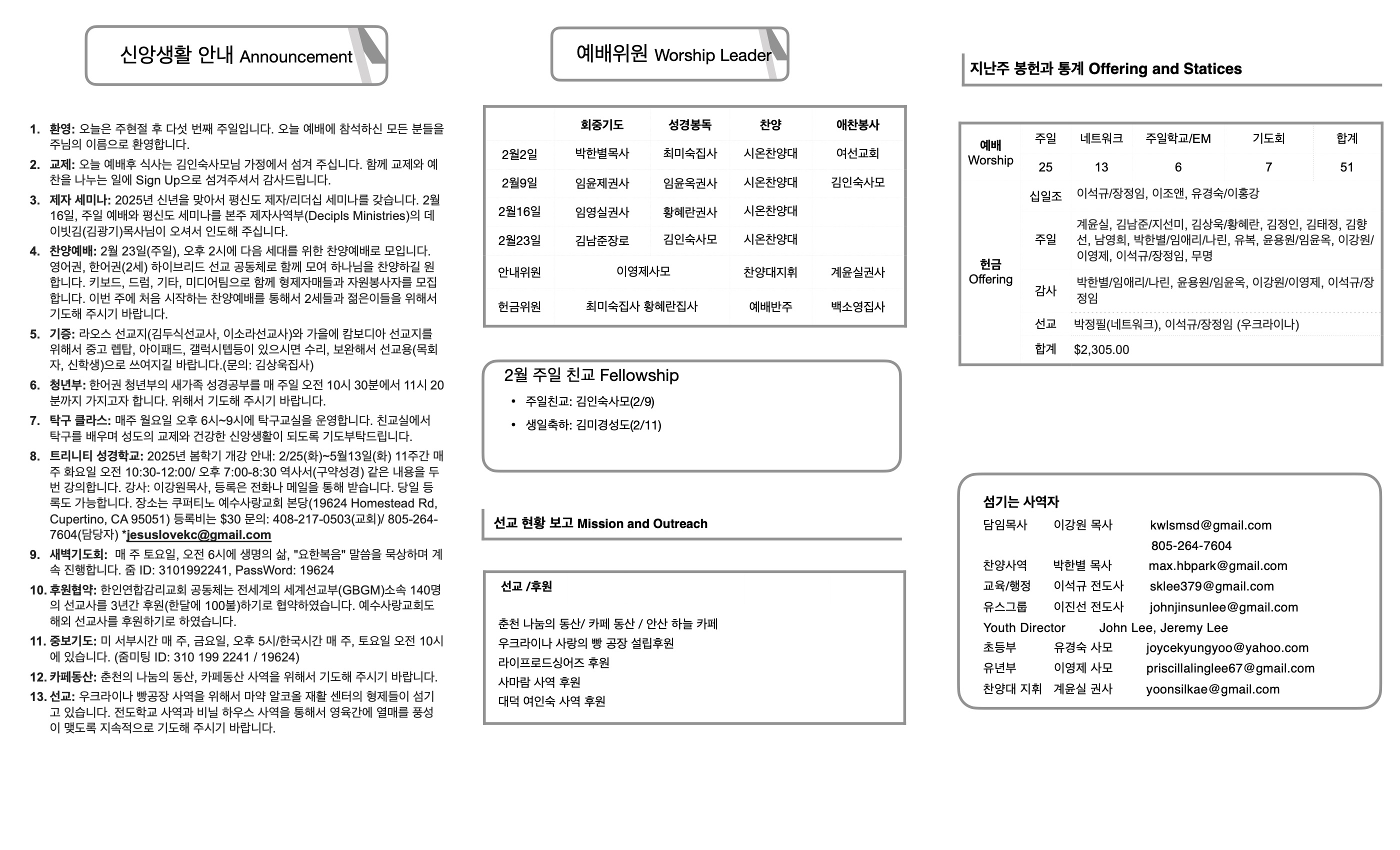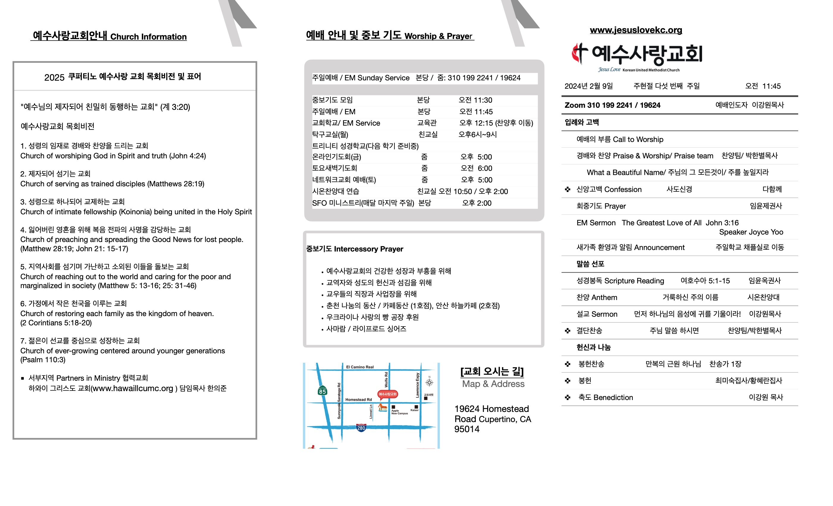 주일예배 2/9/25 페이지 정보 작성자 예수사랑교회 댓글 0건 조회 2,726회 작성일 25-02-10 12:58 목록 본문 주일예배 2/9/25 이전글주일예배 2/16/25 25.02.17 다음글주일 예배 주보 2/2/25 25.02.04 댓글 0 댓글목록 등록된 댓글이 없습니다. 목록