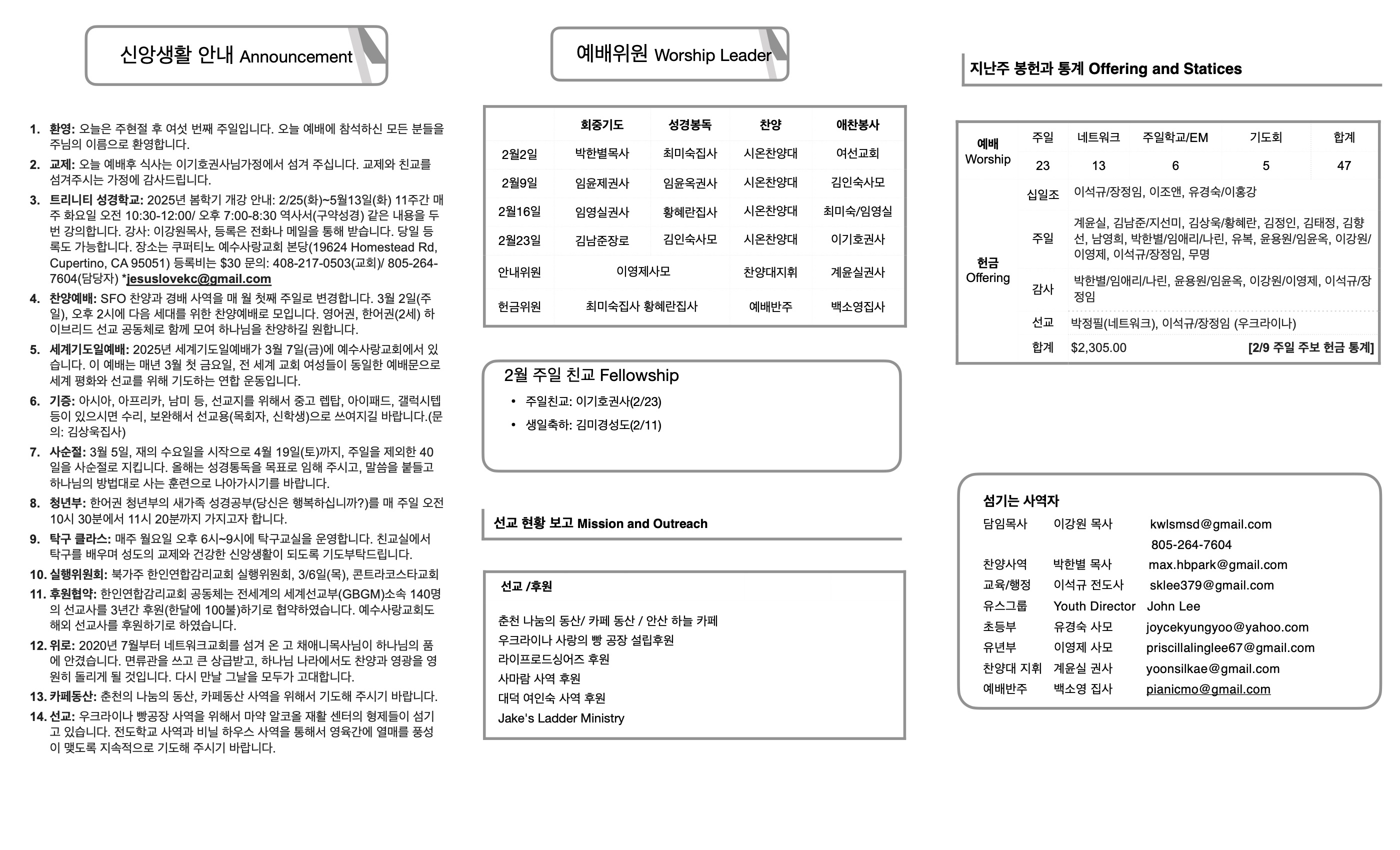 주일 예배 주보 2/23/25 페이지 정보 작성자 예수사랑교회 댓글 0건 조회 2,890회 작성일 25-02-23 23:34 목록 본문 주일 예배 주보 2/23/25 이전글주일예배 3/2/25 25.03.02 다음글주일예배 2/16/25 25.02.17 댓글 0 댓글목록 등록된 댓글이 없습니다. 목록