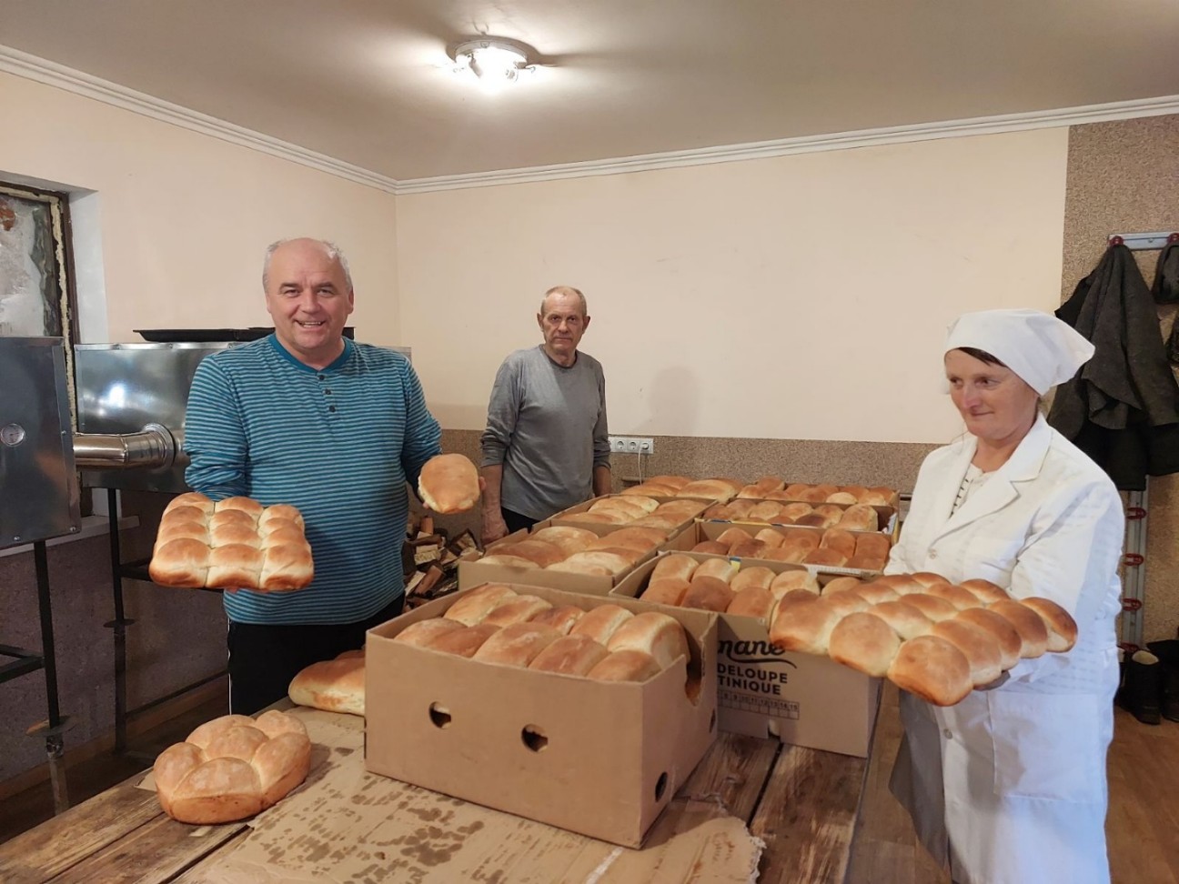 이 가스 오븐은 하루에 4천 개 식빵을 구울 수 있는 용량입니다. 그 동안 시설 허가와 준비 등 많은 시간이 걸려 죄송합니다. 지금은 화목으로 구은 빵(구호빵)은 밀가루만 사용하고 자연효소와 약간의 꿀만으로 굽고 있습니다. 빵 맛이 아주 좋아 이웃들에게 인기도 있습니다. 가게에서 파는 빵보다 맛 있는 빵으로 어려운 분들을 섬길 수 있어 감사드립니다. 건강을 생각하는 빵, 복음을 기억하는 구호빵이 되도록 기도 드립니다."
