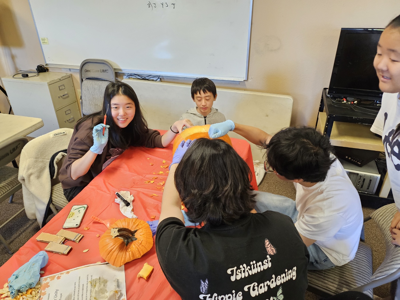 오늘 유쓰모임에서 아이들이 조별로 펌킨카빙 콘테스트로 즐거운 시간을 가졌습니다.