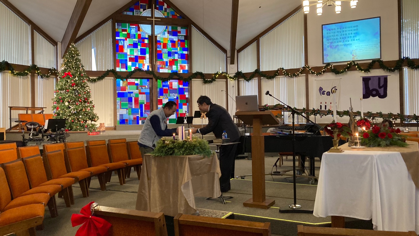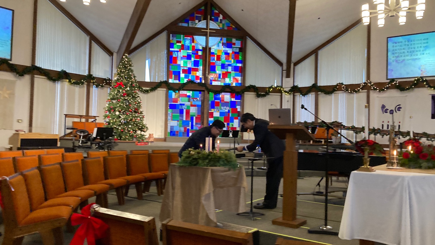 다음주 성탄절을 준비하는 새로운 예배당 배치가 있었고 예배를 드렸습니다.